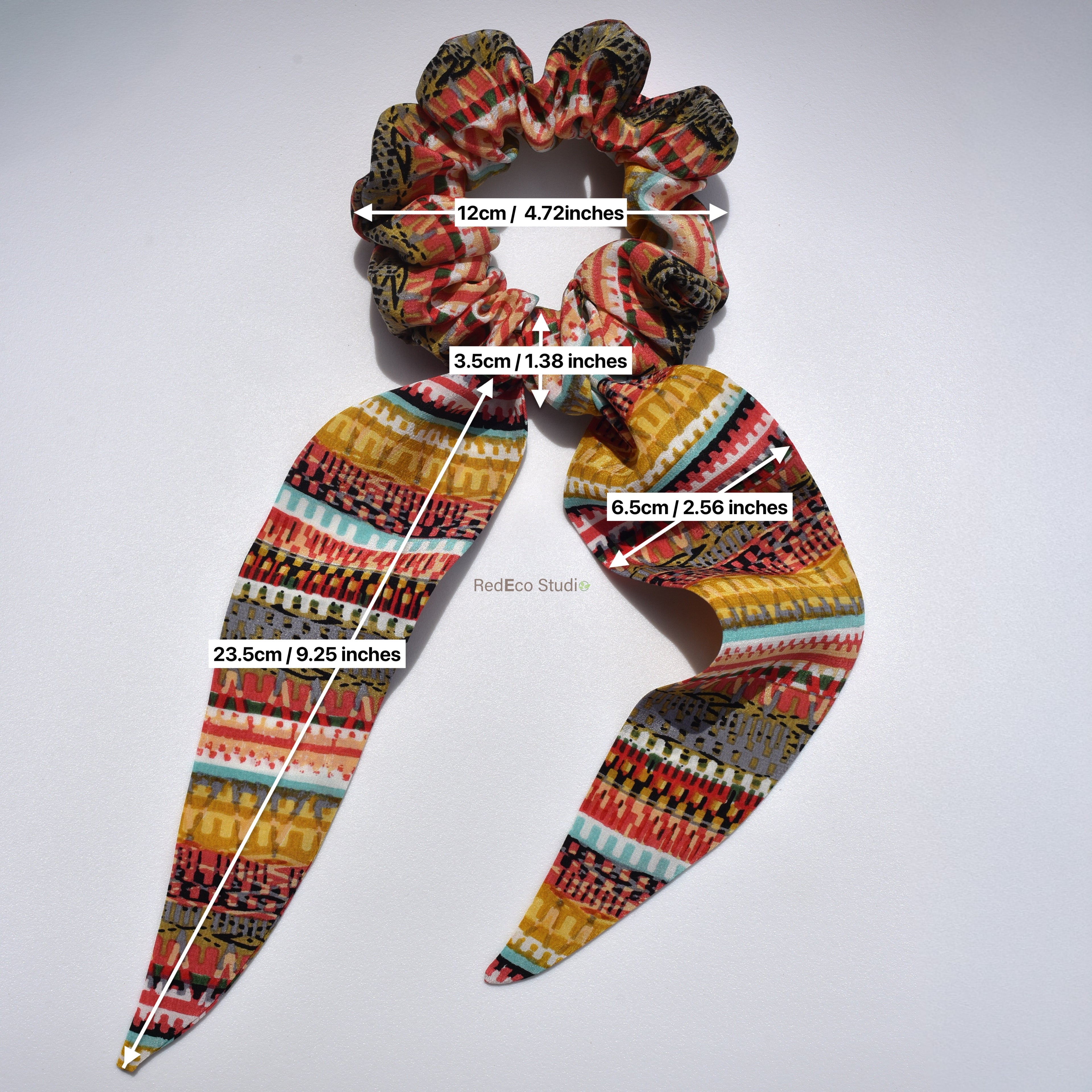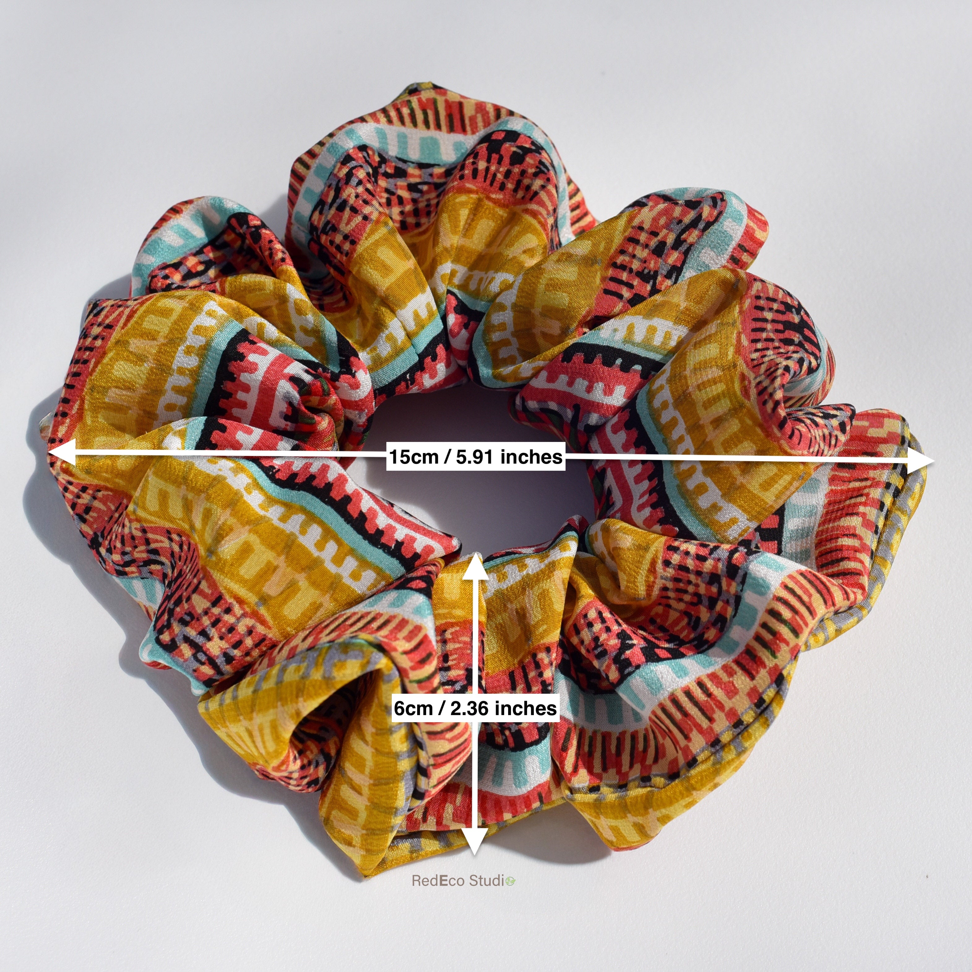 Oversized 100% Silk Scrunchie - Two-tone orange floral pattern