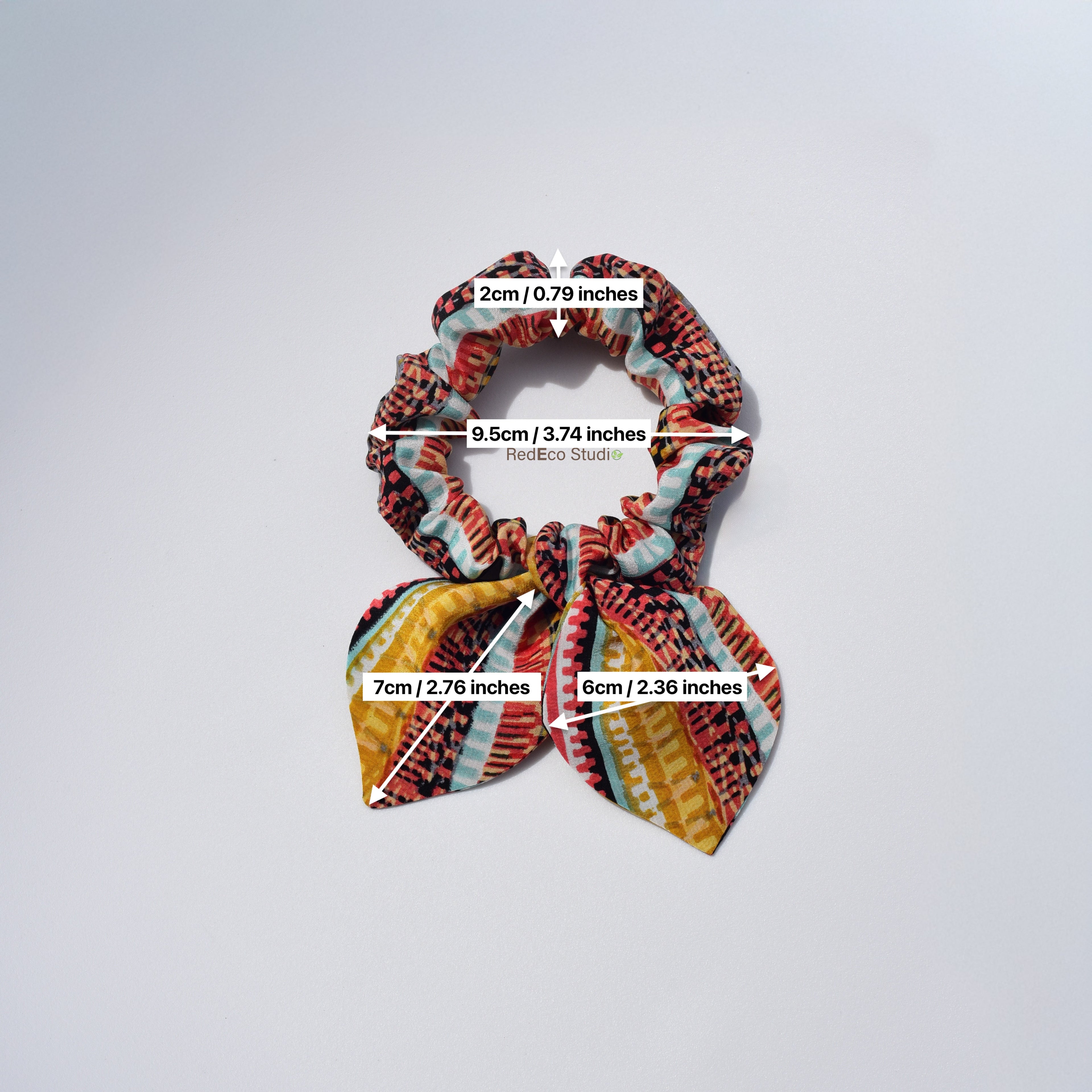 Orange floral silk scrunchie on a white background